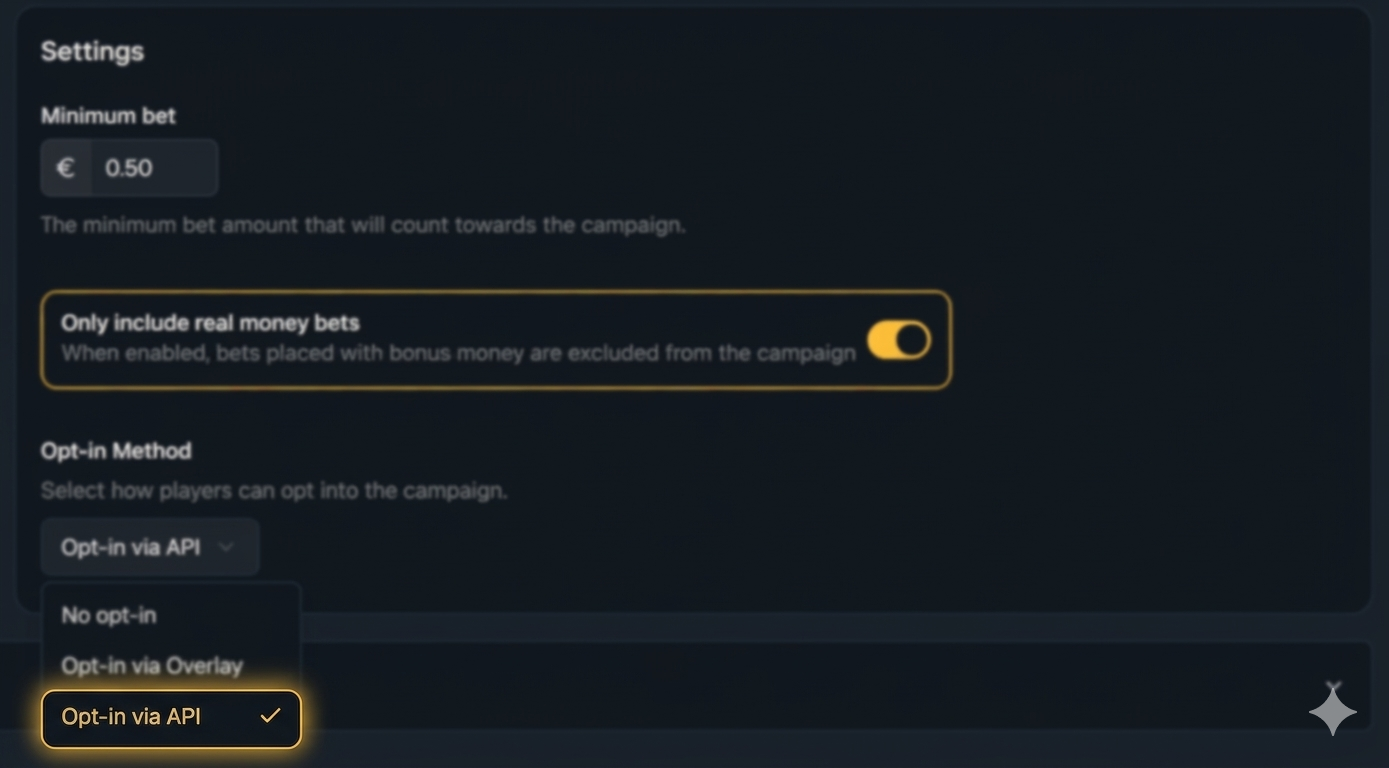 Use Manual Opt-In to collect detailed participation metrics, helping you understand player engagement and preferences. It can also be used to invite players to other campaigns based on whether they joined or not.
