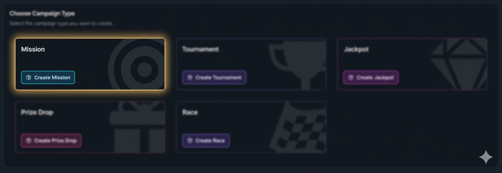 Click the button "+ Create Campaign" and choose the type 'Mission'.